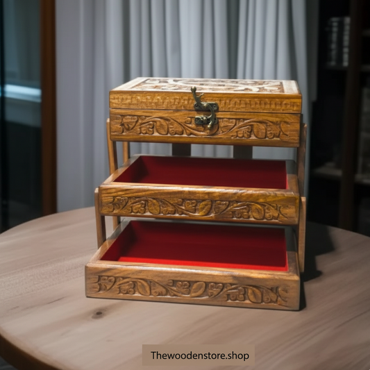 3 Tier Wooden Jewellery Box With Naqshi art