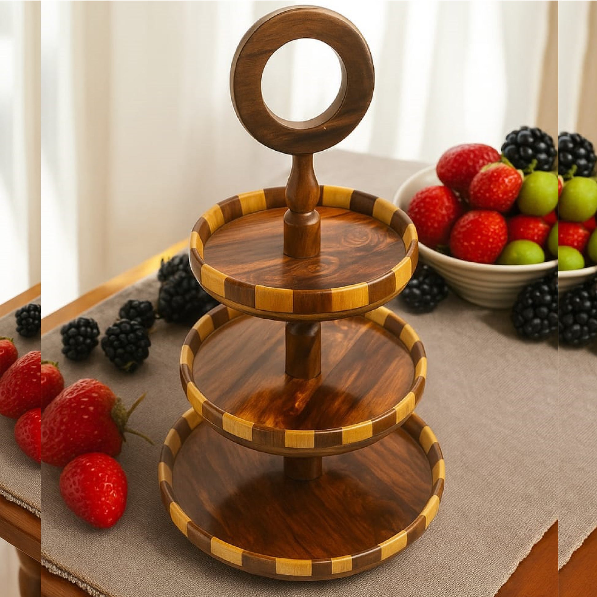3-Tier Wood Slab Cake Stand|Wooden Munchies Hi-Tea Trey