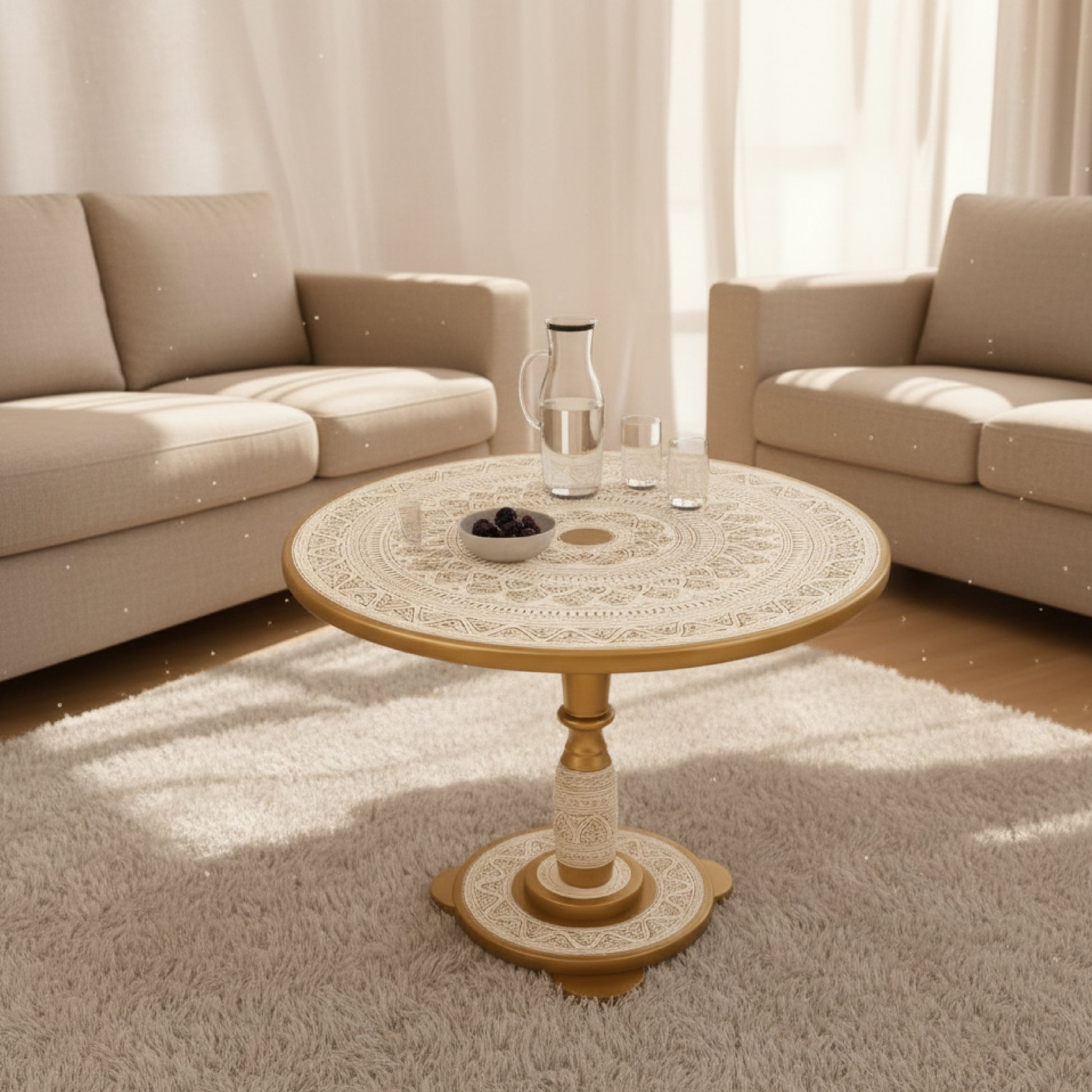 Attrectiv Golen and White Wooden handmade Naqshi Art coffe table 16*16