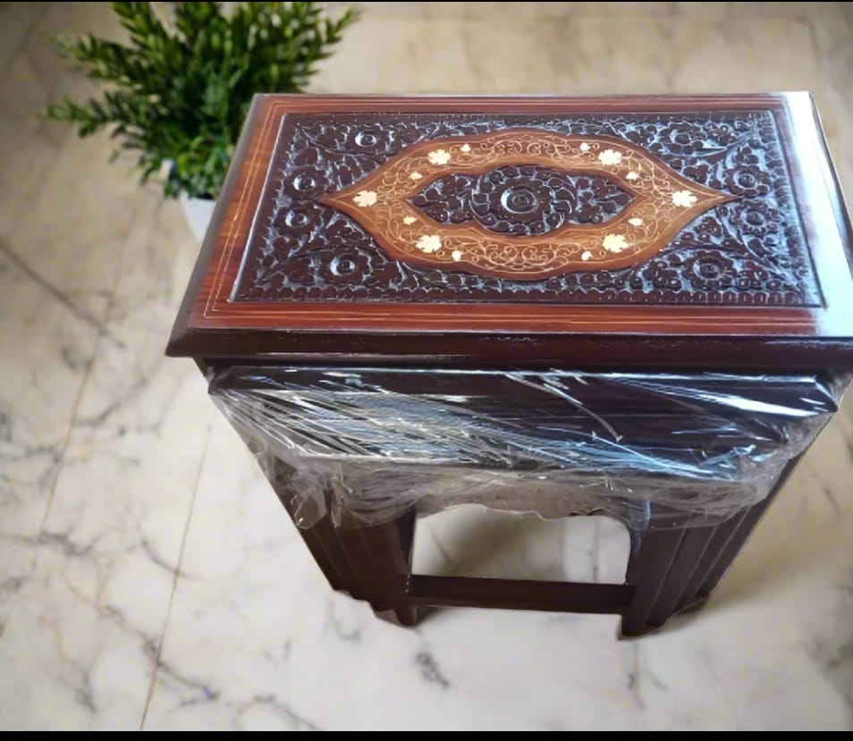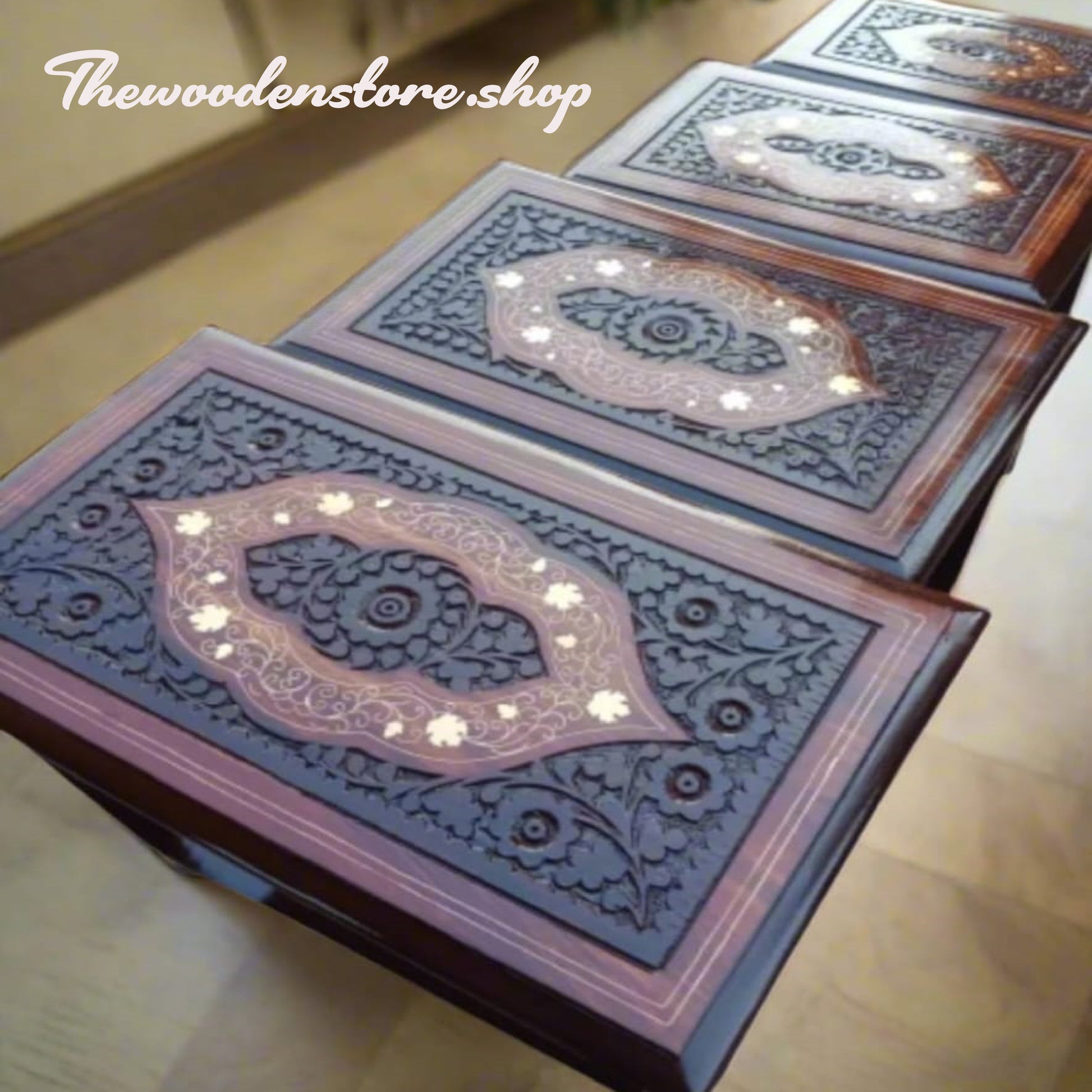 Chinyoti Solid Sheesham wood Craving & Brass table set of 4(Coffe Table Serving tables)