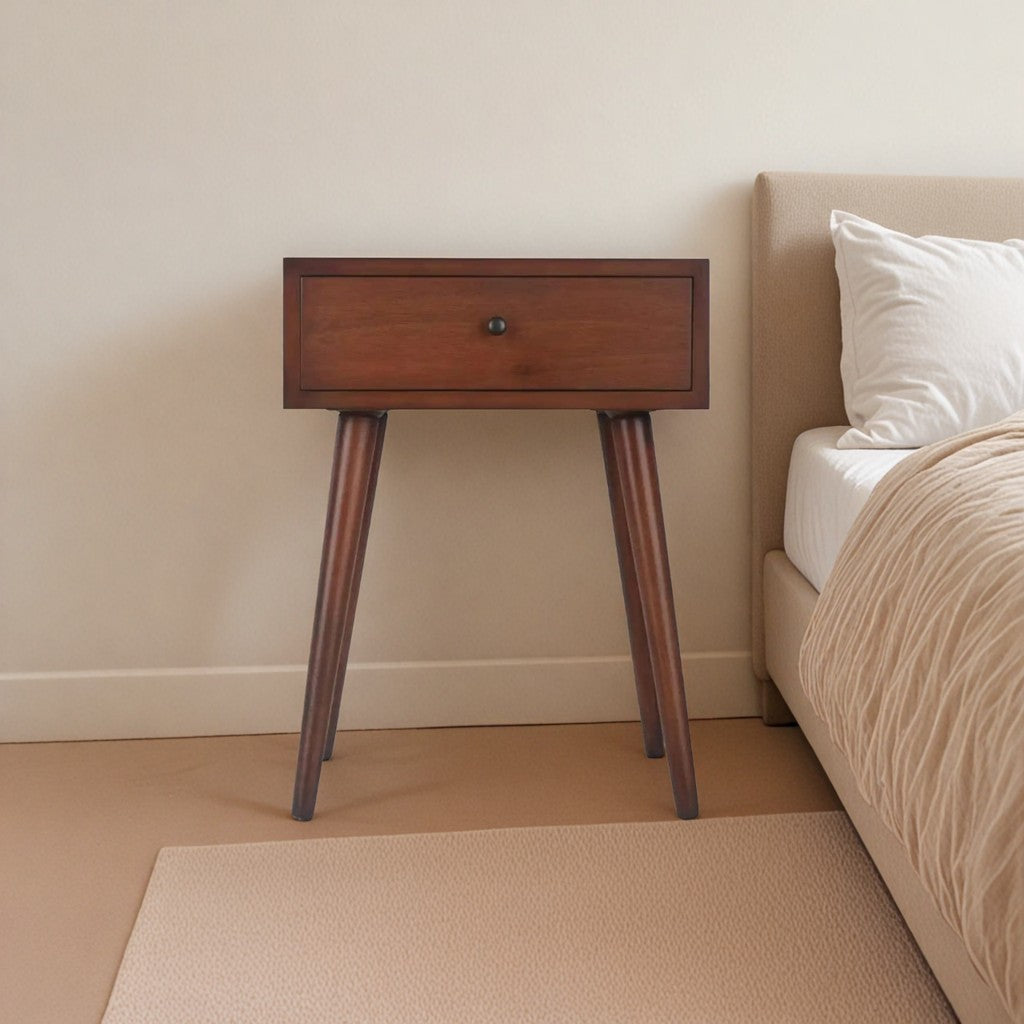 Decor Therapy Mid Century 1-Drawer Wood Side Accent Table ( Brown )