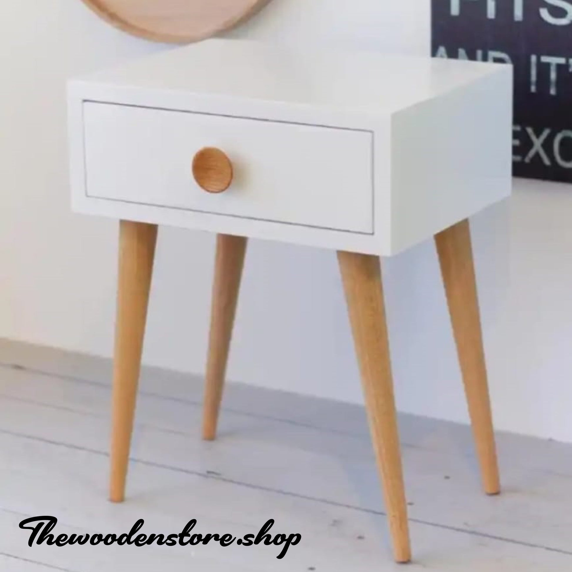 Hardware: Features a simple round metal knob (usually silver-toned) on the drawer for a refined touch