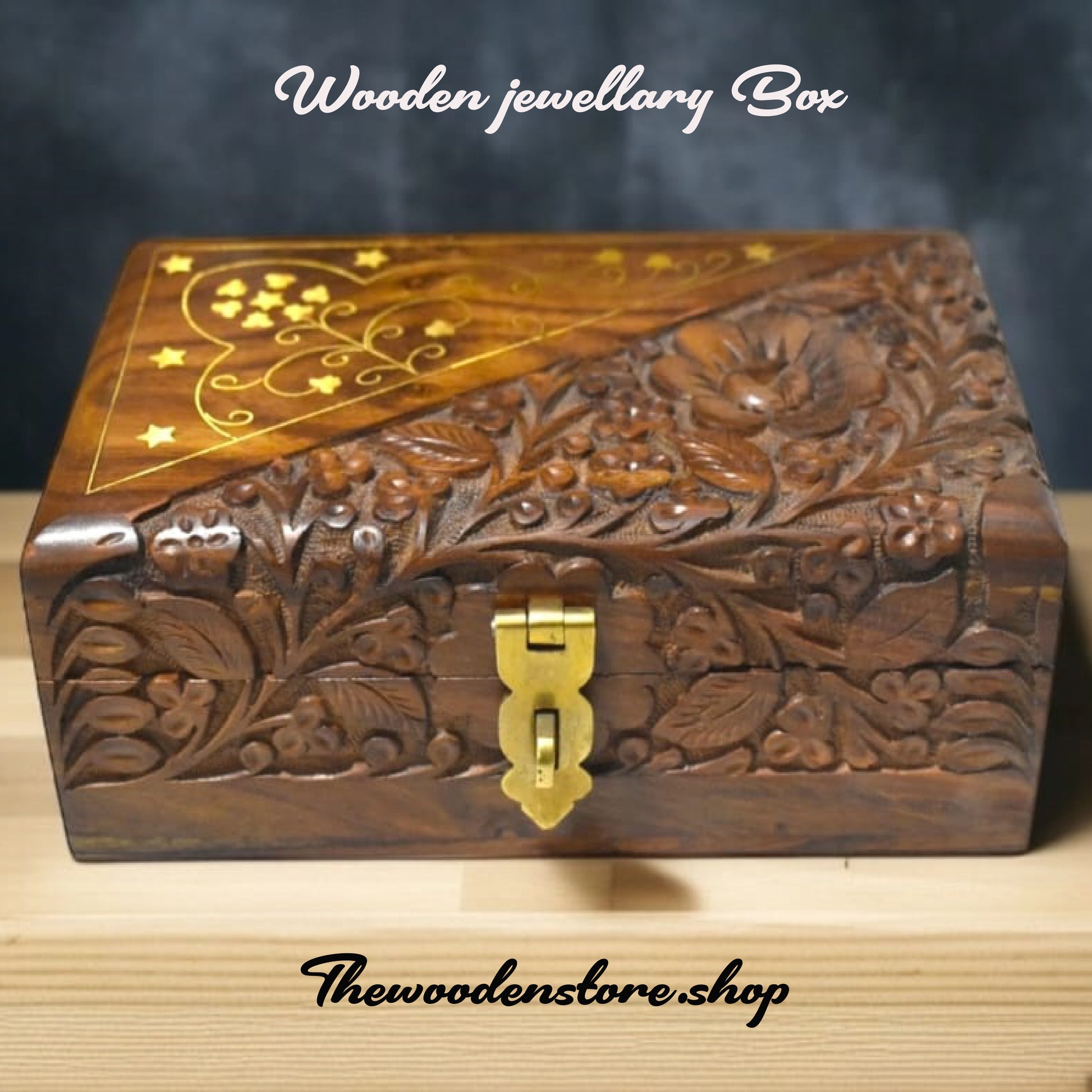 Hand-Carved Jewelry Box with Brass Inlay/ Multipurpose box ( There are no reviews yet. )