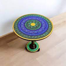 ✨ Elegant Golden‑Green‑Blue Naqshi Art Coffee Table (Approx. 16″*16)