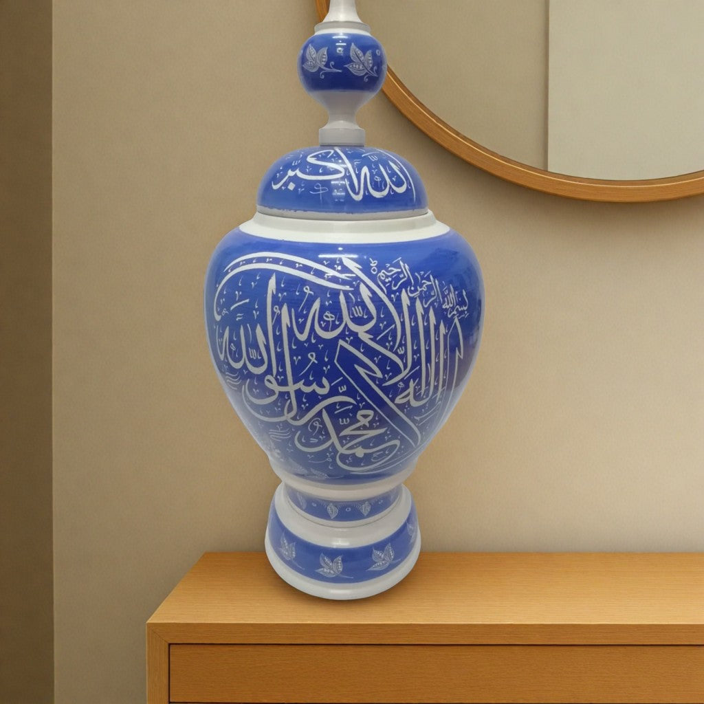 The Islamic Naqshi Art Jar is a stunning example of sacred artistry, where craftsmanship and spiritual symbolism come together in perfect harmony. Rooted in the centuries-old tradition of Islamic decorative arts, this jar reflects the aesthetic principles of balance, repetition, and unity—hallmarks of Islamic design that echo divine order and beauty.